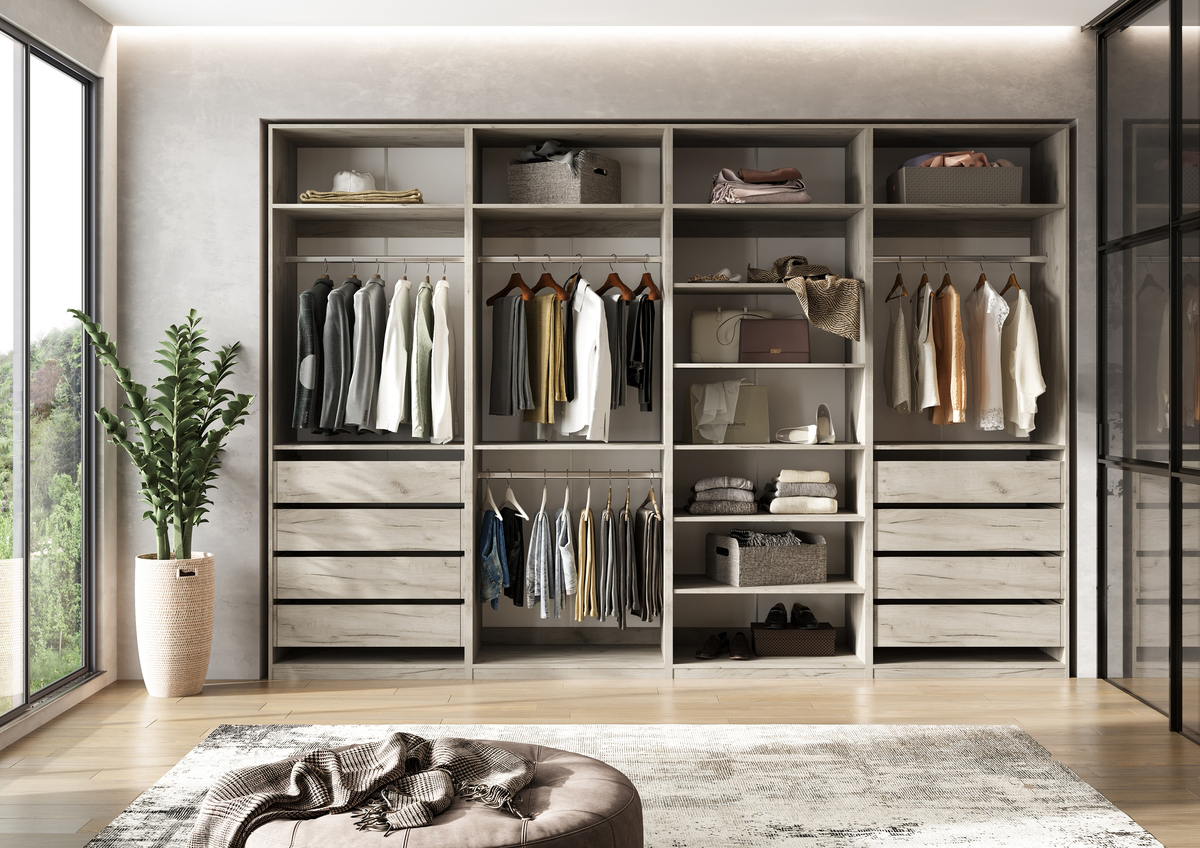 Ларго — это полноценная сборная система гардеробной. Уникальность данной гардеробной в том, что ее можно собрать в десятки различных комбинаций. Все элементы заказываются и набираются отдельно шкафы-каркасы, полки, ящики, фасады.