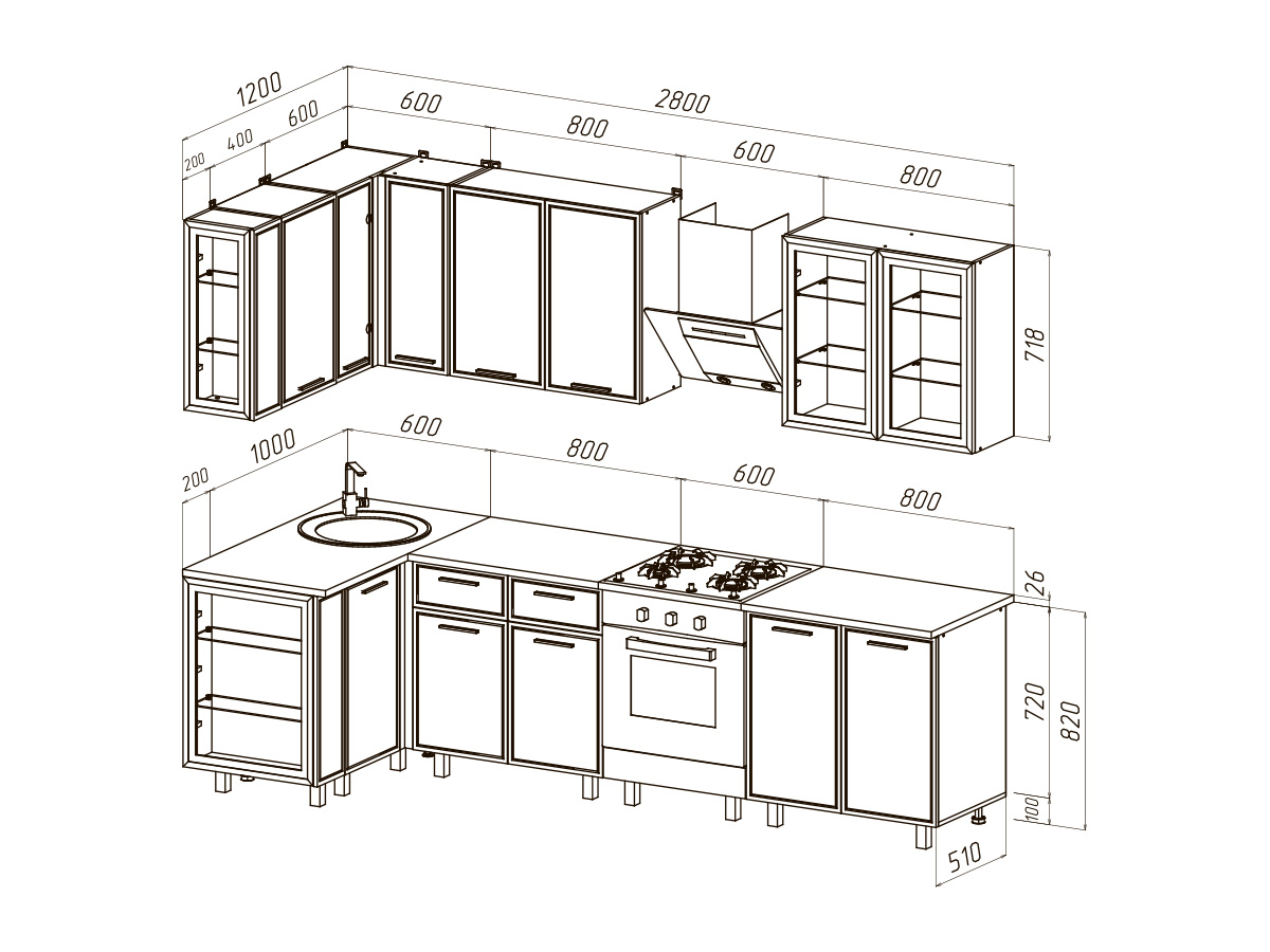 Высота верхних модулей: 718 мм.