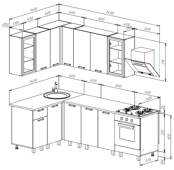 Высота нижних модулей: 820 мм.